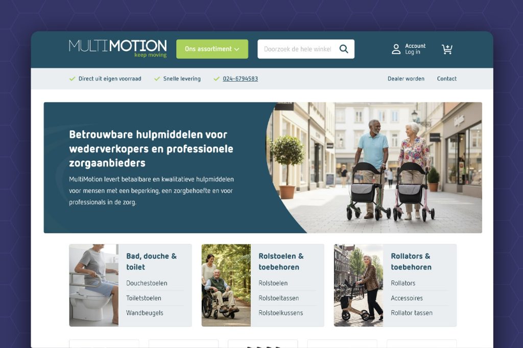 Met deze nieuwe webshop beschikt Multi Motion over de nieuwste technieken in de markt. De nieuwe webshop scoort niet alleen fantastisch op core web vitals, maar heeft ook een grafische metamorfose ondergaan. Er is nu een duidelijk verschil tussen het consumenten en het zakelijke aanbod voor de onderneming.