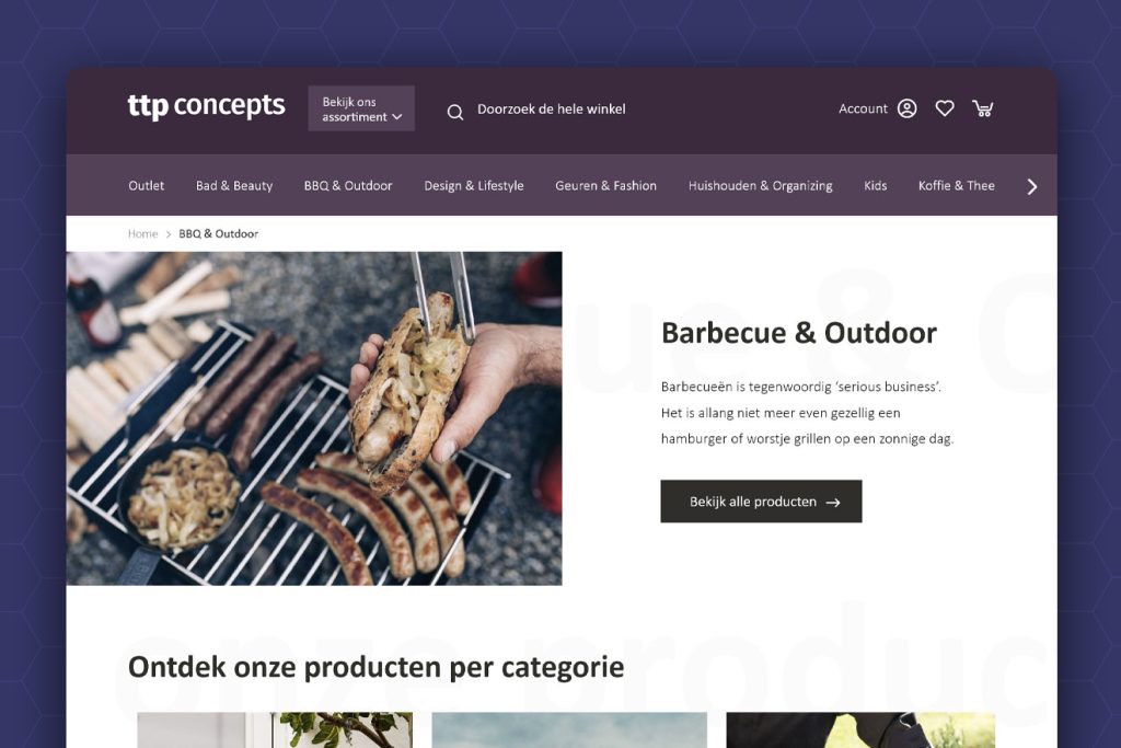 Sjoerd glimlacht als we vragen waarom de webshop geen standaard vormgeving heeft: “Alles bij ons moet van Champions League-niveau zijn. Dat zie je al in onze showroom, die van hoog kwaliteit is, maar het geldt voor alles: de kantine, software, auto’s, onze presentatie op beurzen en dus ook de webshop. Alles van topklasse.” TTP Concepts koos daarom niet voor een standaard webshopvormgeving; alles is visueel ingesteld, met veel fotografie en sfeerbeelden die dezelfde ambiance overbrengen als de showroom. “Mark (de vormgever, Batao) is zelfs een dag langs geweest om aan te voelen wat we zoeken. Hij weet altijd precies de juiste snaar te raken.”