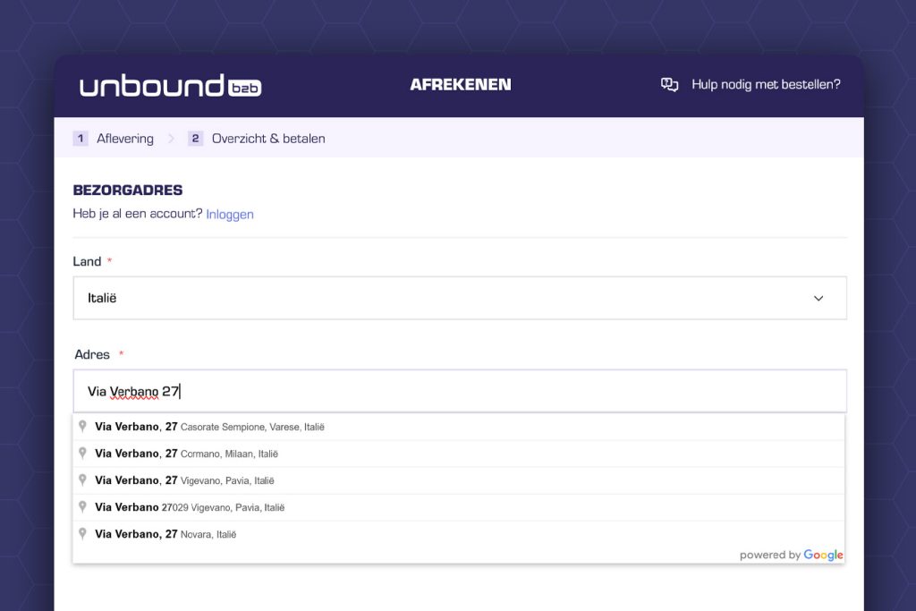 De klant begint met typen, waarna via de Google Maps-zoekfunctie automatisch het juiste adres wordt voorgesteld. Zelfs wanneer wordt gestart met een postcode of er een typfout wordt gemaakt, zijn de suggesties vaak correct. Zo haal je nóg meer fouten uit je proces.