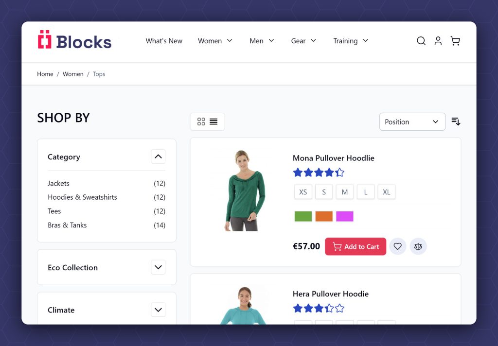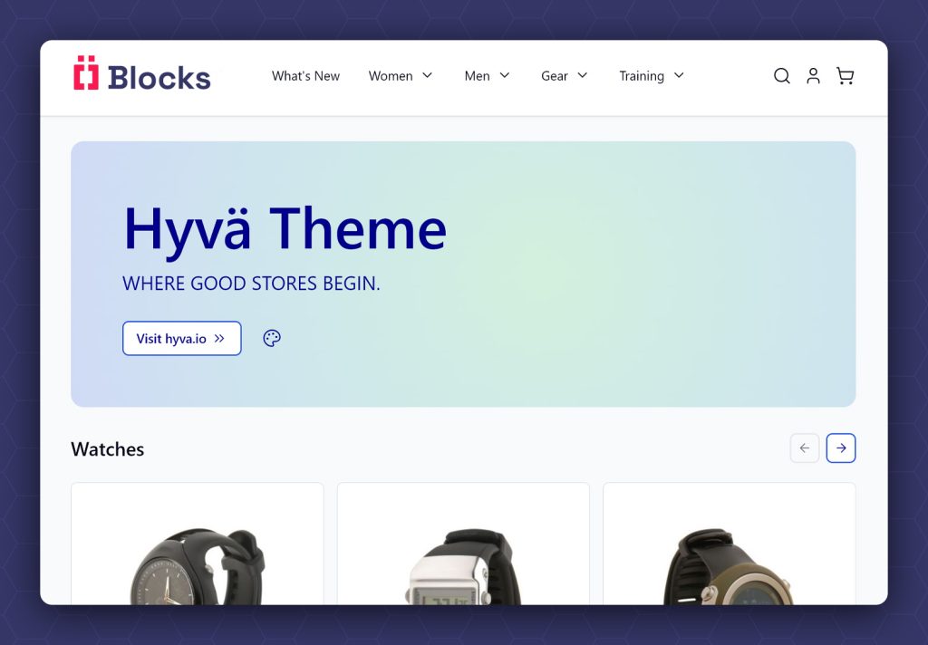 Blocks combineert Magento 2 met het moderne Hyvä frontend framework.