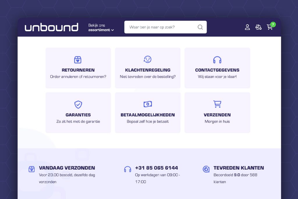 Deel veelgestelde vragen op in categorieën en laat bezoekers snel en eenvoudig zelf antwoorden vinden. Is je klanten-service veel tijd kwijt aan vragen als “Hoe retourneer ik een product?” of “Wat zijn jullie leveringsvoorwaarden?” Dan is deze module een echte must-have.